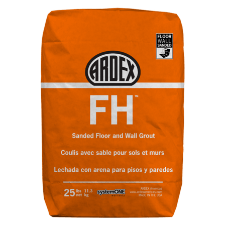 ARDEX FH™ Sanded Floor and Wall Grout is an ideal, everyday, Portland cement-based, polymer-modified grout suitable for most sizes of floor and wall tiles, including mosaics, with grout joints from 1/16” to 3/4” (1.5 mm to 19 mm). When mixed with water, ARDEX FH is a creamy, easily applied grout with good joint filling properties, enabling deep joints to be filled in one operation. When cured, ARDEX FH is weather resistant, unaffected by water and is suitable for internal and external use in dry or wet conditions.