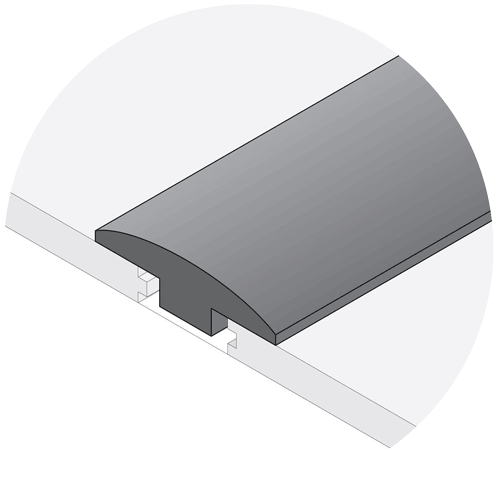 Performs as a transition piece between flooring surfaces in adjoining rooms. Ideal for use in doorways and where floors of approximately the same thickness meet.